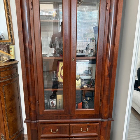 Myydään antiikki vitriini kaappi ruskea. Puuta ja lastulevyä. Hyvässä kunnossa ikäisekseen, mutta yläosan lastu kärsinyt jonkuverran.