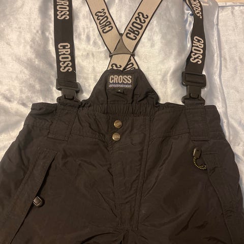Toppahousut. Sininen pinta ja sisältä musta vuori. Lämpimät. Vyötärössä kiristysnarut vyötäröreunan sisäpuolella ja molemmissa lahkeissa kiristysmahdollisuus. Edessä vetoketjulliset taskut molemminpuolin.