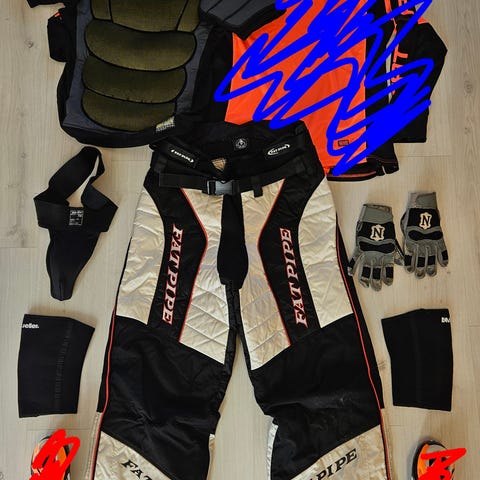 Tästä käytetyt, mutta hyvässä kunnossa olevat hyvät ja laadukkaat salibandy maalivahdin varusteet.
