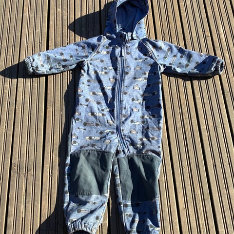Name it tummansininen kukallinen soft shell haalari, koko 98. Hyvässä kunnossa, eikä moitteita kankaassa.