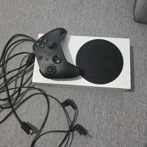 Käytetty Xbox Series S konsoli, mukaan tulee virta sekä HDMI-johdot ja yksi ohjain. Ohjaimen oikeassa analog-tatissa pieni kosketushäiriö, joka aiheuttaa välillä äkillisen kuvakulman hyppimisen, mikäli tattia ei kosketa. Kuvista poiketen konsoli on puhdistettu huolellisesti ympäriinsä.