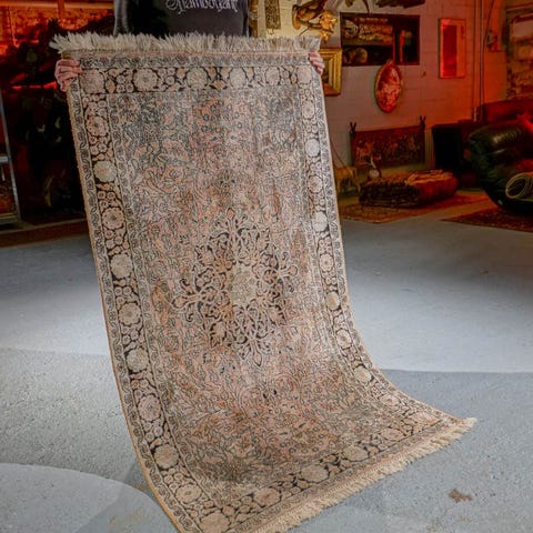 käsinsolmittu itämainen aitomatto villamatto vintage persialainen aito villa silkki silkkimatto kasmir vaalea beige matto käsinkudottu käsin käsintehty käsityö antiikkimatto vintagematto helsinki helsingissä