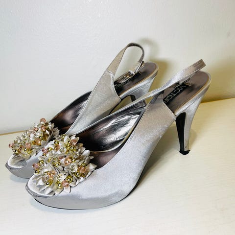 Naisten juhlakengät, sandaalimallinen avokas. Koko 38. Väri harmaa/beige
