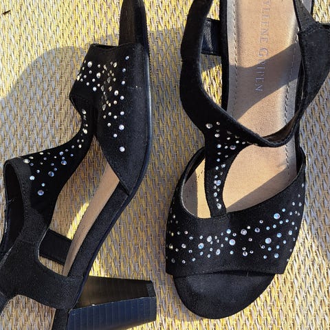 /keinonahkaa ja koristeena on pieniä strasseja. Kengissä on 7 cm korko Sopivat juhla- ja tilaisuuskäyttöön sekä kesäkengäksi.
