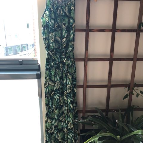 Veromodan vihreä,, ohut, vuorillinen röyhelömekko S-kokoa, 100% polyesteriä. Mitat: kai - kai n.42cm, niska-helma n.88cm.