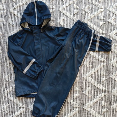 Reima sadetakki 128. On vähän tahraa, ei kulumaa.