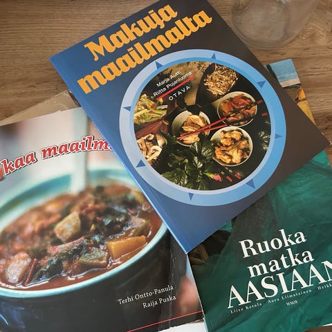 Annetaan Kotivinkkikirjaston suuri mikroruokakirja vuodelta 1993 . Ohjeet helposti muunneltavissa airfryerille.