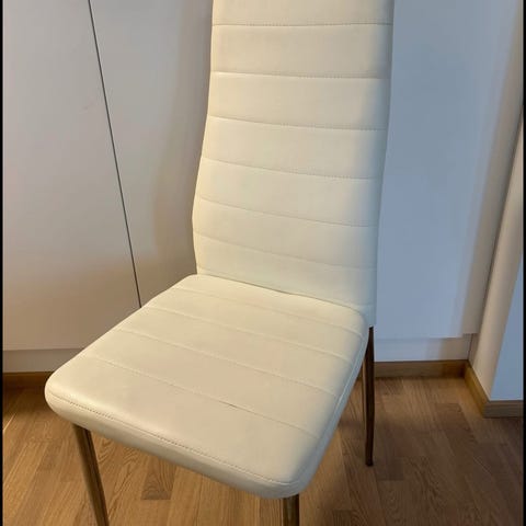 Kaksi kappaletta Ikean Bernhard tuoleja. Istuinosat valkoista nahkaa, jalat kromia. Siistissä kunnossa.