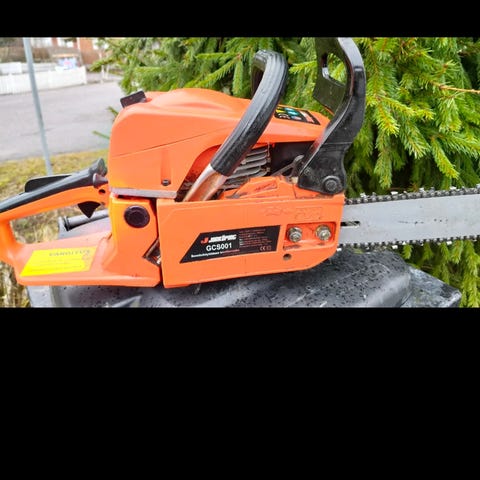 Sachs Dolmar moottorisaha oranssilla rungolla. Polttomoottorikäyttöinen ketjusaha, jossa etukahva ja takakahva hallintalaitteineen. Soveltuu puun ja polttopuiden katkaisuun sekä muuhun yleiseen sahaustyöhön ulkokäytössä. Tarkemmat tekniset tiedot, kuten moottorin tilavuus, teho ja laipan pituus, eivät käy ilmi kuvista.Ketjujarru toimii. Ja muutenkin toimii hyvin. Lähetys tai nouto