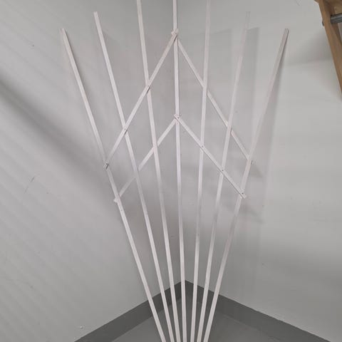 Kaksi köynnöstukea. Toinen noin 180 x 50 cm, toinen vähän pienempi. 8 euroa kpl tai 15 euroa molemmat. Sijaitsevat Porvoossa