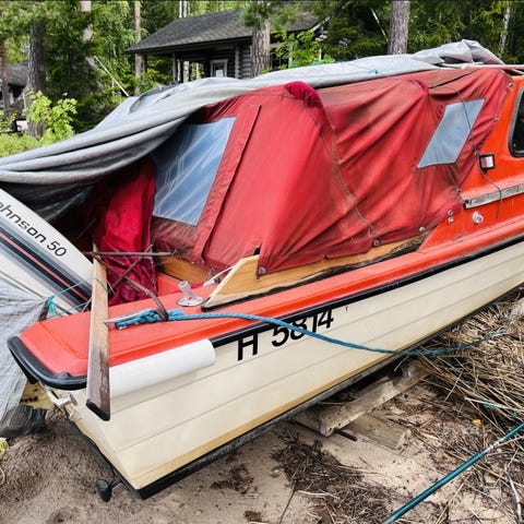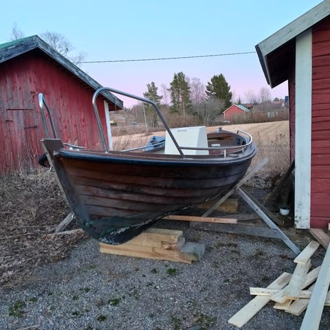 Myydään tukeva lasikuiturunkoinen kalastusvene Särki. Pit. 430, lev. 160, kork. 76 cm. Moottori Johnson seahorse 2t. 6hv. vm.82. Pakettiin kuuluu 4 kpl. Vapateline, polttoainesäiliö. Veneessä on uusi ohjauskaapeli ja moottorikaivokiinnike. Runko on ehjä moottori toimiva.
