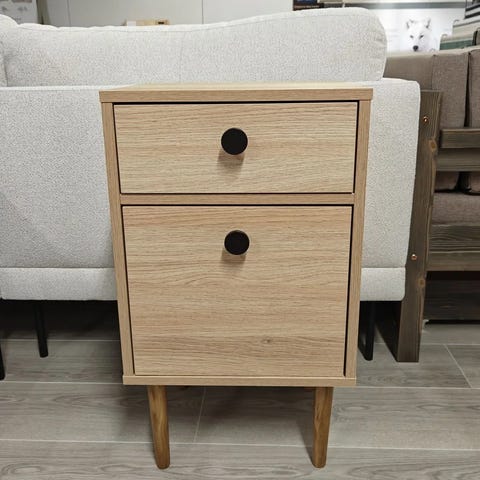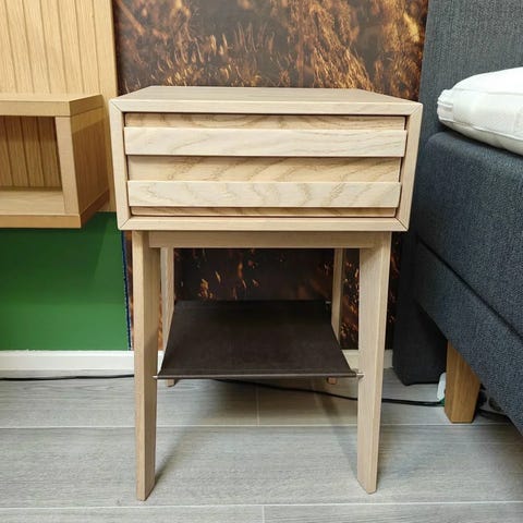 Kaunis Sylvia-yöpöytä sopii monenlaisen sängyn rinnalle. Yläosassa on vetolaatikko ja alaosassa on korkea ovikaappi, jossa on yksi säädettävä hyllylevy. Kaapin oven saa asennettua kasausvaiheessa oikean- tai vasemmankätiseksi. Materiaali on valkoiseksi maalattua mdf-huonekalulevyä.