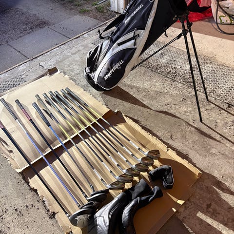 Myydään Wilson Tour RX juniori/naisten setti. Ollut itsellä käytössä juniorina, sittemmin seissyt varastossa kymmenisen vuotta. Mailat ovat muuten hyvässä kunnossa, mutta pieniä lohkeamia pinnoitteessa/maalissa. Bägi muuten hyvässä kunnossa paitsi toisen puolen vetoketju ei mene alas asti. Taskua voi silti käyttää miltei normaalisti.