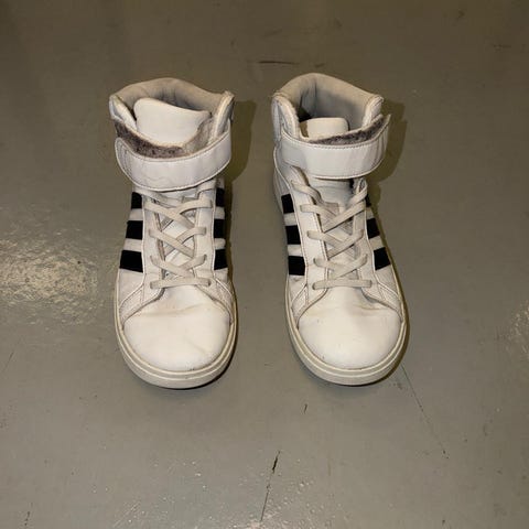 Erittäin hyväkuntoiset Adidaksen lasten tennarit, koko 37 1/3. Väri beige/harmaa klassisilla raidoilla. Mokkanahkainen pinta. Ei näkyviä kulumia.