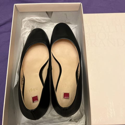 Myyntiin kauniit, erittäin siistit, lähes uutta vastaavat kiiltonahkaiset Högl korkokengät koossa 37 (US 6½, UK 4) Väri nude ja koron korkeus n. 9cm, platform n. 2cm. Päkiän kohta pehmustettu, kantalaput vaihdettu kumisiin, Yksi musta jälki pohjan lähellä (kuva) muuten en löydä moitittavaa. Pohjat siistit (kuva), käytetty vain muutaman kerran. Kauniit korkkarit.