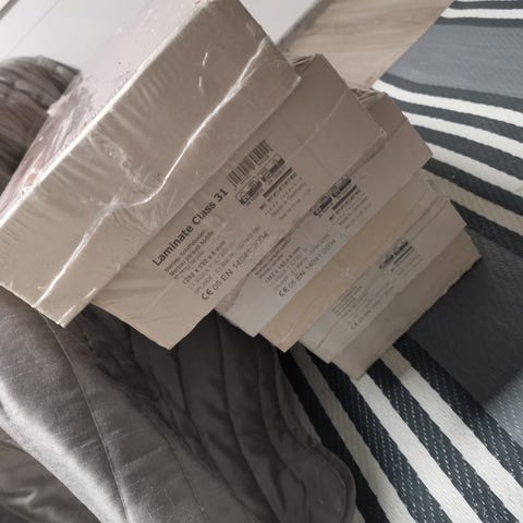 Cellon valkoinen tammi laminaattilattiaa purettuna. Hyväkuntoista.
