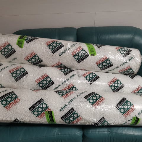 Puretaan pois noin 60 neliömetrin alueelta, tarkka määrä selviää purkamisen edetessä. Mukaan saa halutessaan erillisen askeläänieristeen.
