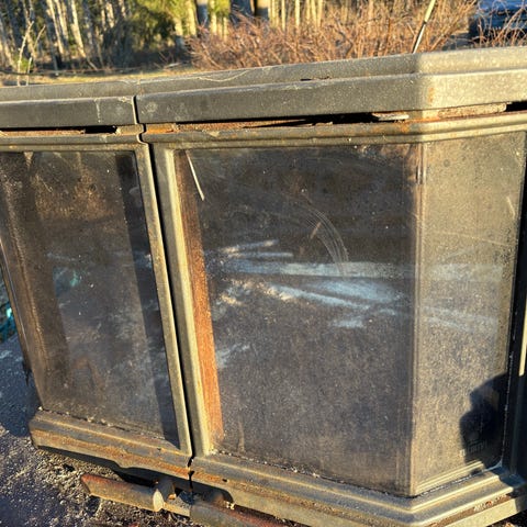 Kehyksen leveys 54 cm, korkeus 50,5 cm. Savupiipun halkaisija 14 cm.