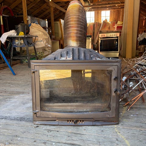 Takkasydän musta metallia. Upotettava takkasydän, jossa lasiluukku ja metallirunko. Soveltuu muurattuun takkaan asennettavaksi. Edessä kääntyvä luukku, jossa kahva ja ilmanvaihtoaukot. Yläosassa liitosaukko savupiippua varten.