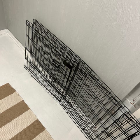 Metallinen koiran kuljetushäkki, mitat noin 106 cm (pituus) x 70 cm (leveys) x 75 cm (korkeus). Häkissä on irrotettava muovipohja, joka helpottaa puhdistusta. Metallirakenne on taittuva, joten häkki on mahdollista kasata kasaan säilytystä ja kuljetusta varten. Sopii koiran tilapäiseen majoitukseen ja kuljetukseen esimerkiksi autossa tai sisätiloissa käytettäväksi lemmikkihäkiksi.