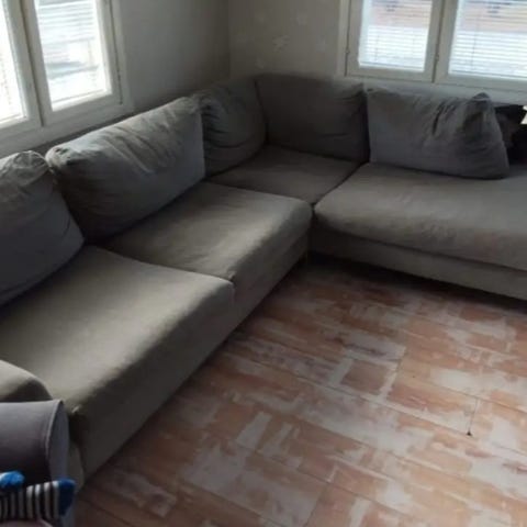 Myydään uuden tieltä 3 istuttava kulmasohva.