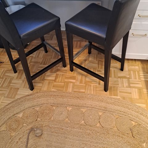3kpl baarijakkaroita nahkaistuimella. Istuinosat ehjät, yhden jakkaran jaloissa kulumajälkeä. Haku Klaukkalasta. 20e yhteensä.