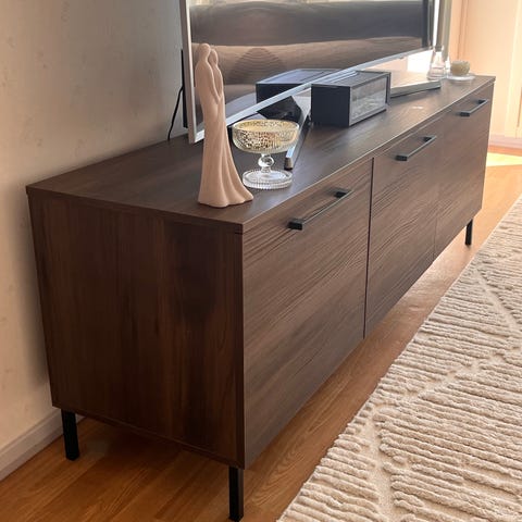 Myydään Maskun tv-taso, mitat: pituus 160 cm, leveys 40 cm, korkeus 63 cm.