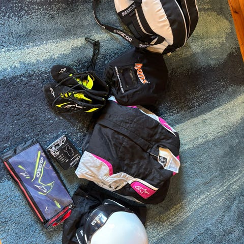 Siitäpä 6-7v nuorelle ajokamat. Meillä ollut pojalla mopo ja mönkijä ajossa sekä alamäkipyöräilyssä. N.120-130cm.kaikki ehjiä paidassa ja housuissa jokunen tahra saattaa olla. Koko paketti 40e.