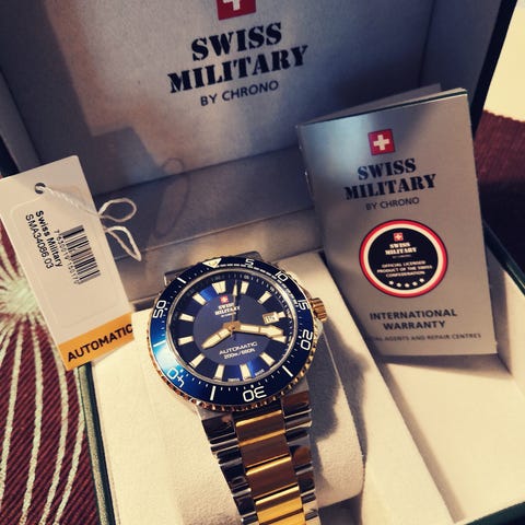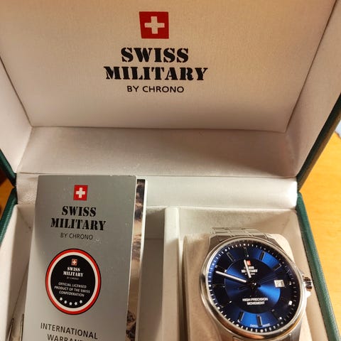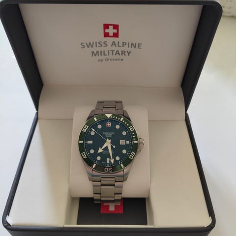 Kuvan laadukas Sveitsiläinen kello myynnissä! Tämä palveli itseä monta vuotta ihan päivittäiskellona, mutta nykyään olen siirtynyt erikoisempiin g-shockkeihin. Tämä siis jäänyt ihan tyhjänpantiksi.