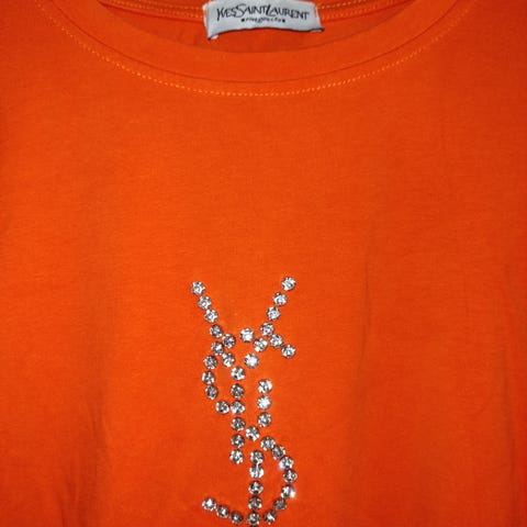 Oranssi pusero röyhelöhemalla ja lyhellä hihalla
