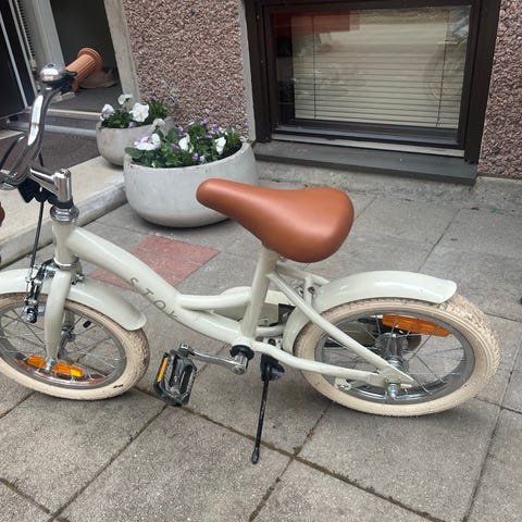Stoy lastenpyörä, 14”. Beige. Paljon ajettu ja käytönjälkeä on, silti ehjä ja suoraan käytöstä myyntiin tuleva.