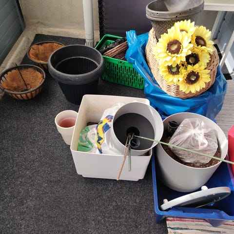 Vähän käytetyt parvekeruukut kiinnikkeineen. Ruukkujen koko 70x17x17 cm.