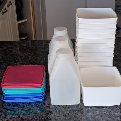 16 kpl pakasterasioita kansineen. Kaikki ehjiä ja siistejä.