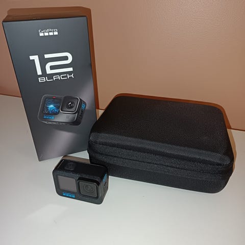 GoPro Hero 12 Black. Kunto on kuin uusi. Ostettu kesällä 2025 uutena, eikä ole tiputeltu, heitelty eikä kolhittu. Linssi täysin virheettömässä kunnossa, ja rungossakaan ei käytön jälkiä näy.