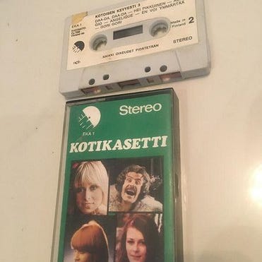 Certron C-60 ja Abiko QHF C60 äänikasetit. Molemmat ovat C60-tyypin kasetteja, noin 60 minuutin kokonaissoittoajalla. Certron-kasetin kotelo on vihreä ja Abiko QHF -kasetin kotelo punainen. Kaseteissa on muovikotelot ja etiketit, joihin on mahdollista merkitä sisältötiedot. Sopivat C-kasetti tukeviin kasettisoittimiin ja nauhureihin äänen tallentamiseen ja toistoon. Äänen laatu todella surkea, mutta historian havinaa näissä on...