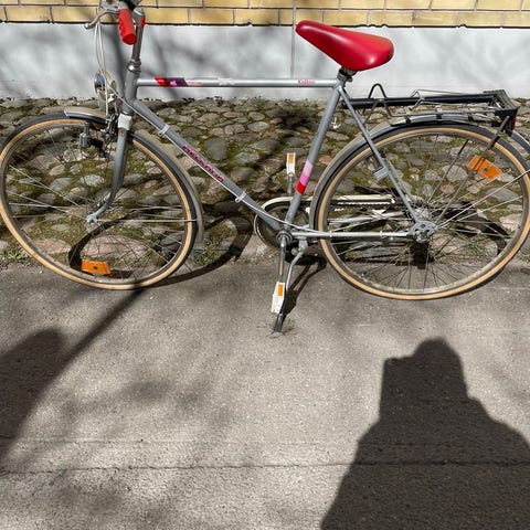 7-vaihteinen pyörä, jossa kori ja tavarateline. Kaikki toimii.