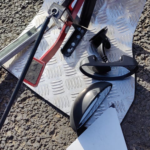 Myydään ajo-opetuspoljin, lisäpeili ja opetuskolmio. Sisältää kaikki tarpeelliset hilppeet kiinnitykseen.