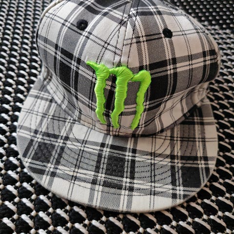 Myyntiin siistikuntoinen Monster Energy -lippis. Musta pohjaväri kuviolla ja edessä kirkkaan vihreä logo.
