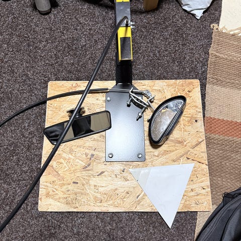 Ehjä hyväkuntoinen opetuspoljin telineellä (alumiinia, pohja vaneria) mukaan vähän käytetty peili ja magneettinen kolmio