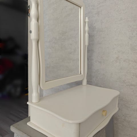 Pöytäpeili. Teipistä jäänyt liimajäljet. Muuten Hyvässä käytetyssä kunnossa. Jäljet saa varmasti pestyä pois jollakin aineella.