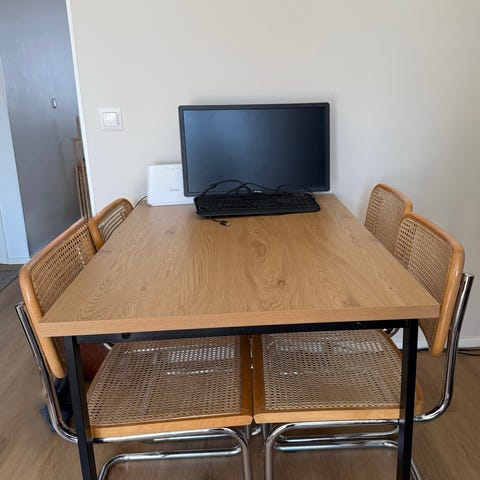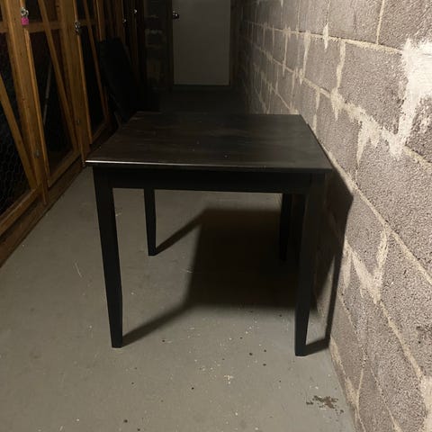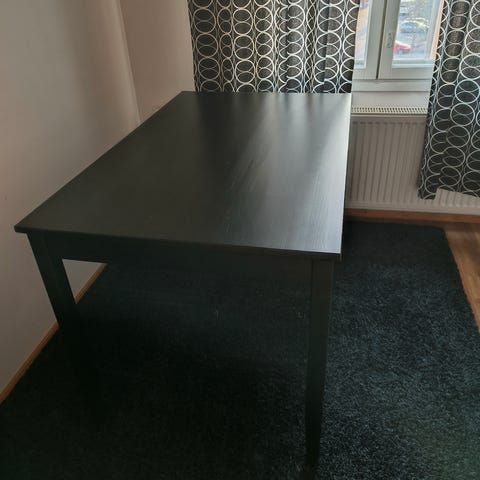Myydään tarpeettomaksi jäänyt musta ruokapöytä. Pöytälevyssä pari jälkeä (kuva 2), nämä huomioitu hinnassa.