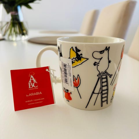 Uusi, käyttämätön muumimuki ABC Muumipeikko.