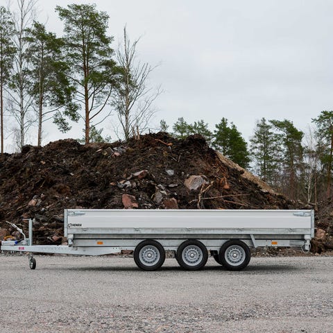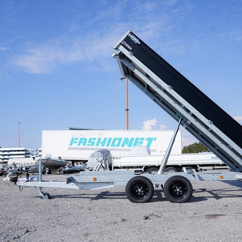 Markkinoiden suurin sähkökäyttöinen kolmikaatokippi - 2-akselinen! Kuvan 35cm lisälaidat (alumiini) ovat lisävaruste.