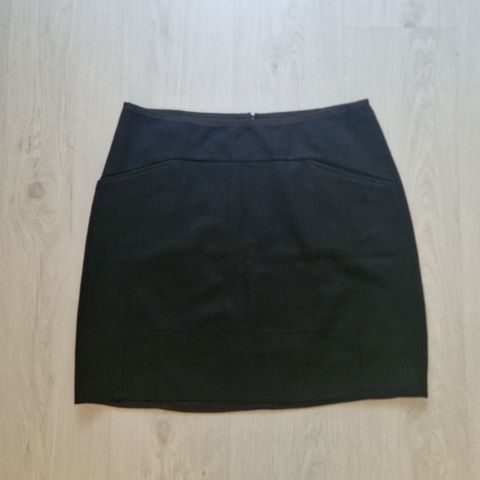 Kerran yksissä juhlissa käytetty puolihame. Notations-merkkinen ja ostettu Jenkeistä. 100% polyesteri, vuori kokonaan musta. Laskeutuu hyvin, erikoinen helma. Koko L, vyötäröllä kuminauha ja venyy 86-109 cm, pituus 73 cm - 98 cm(pisimmät kulmat)