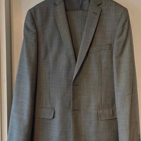 Myydään muutaman kerran käytetty slim puku ja kauluspaidat. Koiratalous! On lojunut kaapissa joten pesu jää ostajalle!