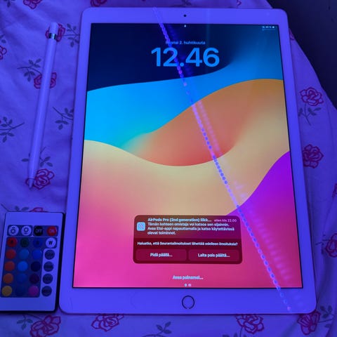 Apple iPad Pro tabletti, tallennustila 256 GB. Soveltuu esimerkiksi internetin selaamiseen, suoratoistoon, sovellusten käyttöön sekä työ- ja opiskelukäyttöön. Litteä rakenne ja kosketusnäyttö. Kuvissa näkyy laitteen etu- ja takapuoli.