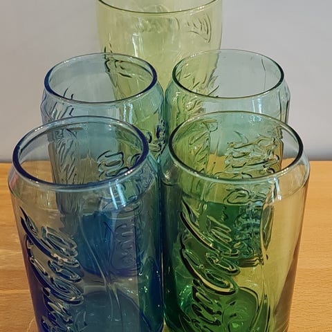 Uniikkeja laseja, osa sileitä, osa kuviollisia.
