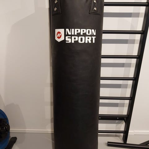 Hyväkuntoinen NIPPON SPORT -merkkinen nyrkkeilysäkki. Sopii erinomaisesti koti- tai kuntosaliharjoitteluun.
