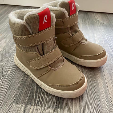 Reima lasten välikauden kengät, koko 26. Kengät ovat nilkkapituiset ja väriltään ruskeat, käytönjälkeä pinnassa.