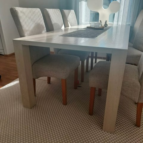 Pöytä ja 6 kpl.tta tuoleja,pöydän koko 150x90,ei eläimiä eikä tupakointia taloudessa,voi toki tarjota jotain